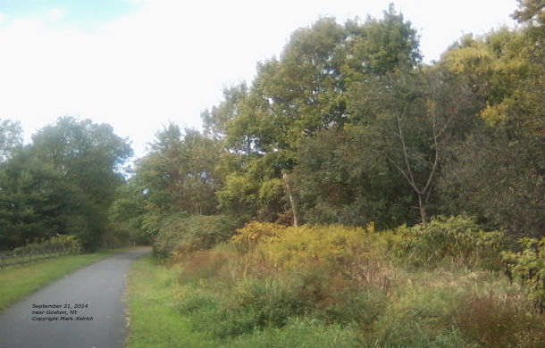 The photo above was taken at around 1:00 p.m. today in upstate New York, where the leaves are just beginning their annual color change. Starting with a deep green, they shift in color to a weak green, then yellow, then a red that I find beggars my attempts to describe it; it is a red I refer to as “fall foliage red,” because I do not run into it elsewhere.