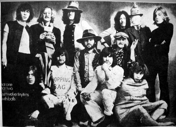 In most of their performances, Stanshall was the lead singer, focus of attention, easily distracted emcee, and camera hog whenever one was present. The basic Bonzo line-up was Neil Innes, Rodney Slater, Sam Spoons, Roger Ruskin Spear, Vernon Dudley Bohay-Nowell, “Legs” Larry Smith, and Bob Kerr. At times, the group was down to three members (when an album was required to meet a contractual obligation) and at others, more than a dozen musicians and affiliated acts might be occupying the stage.