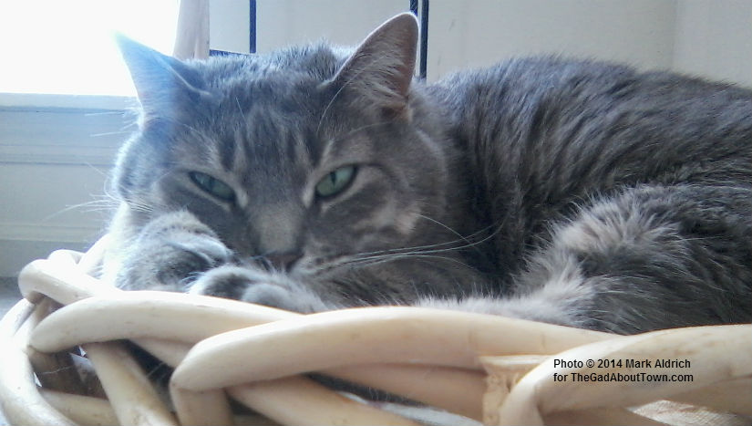 That is a wary eye she is giving me in the photo at top. She allows me to call her “Ángel, el gato de amor,” and to photograph her sometimes, even though she knows that I know that she can not be seen when she is not seen. Such as when she is sunning herself in her wicker basket-slash-throne.
