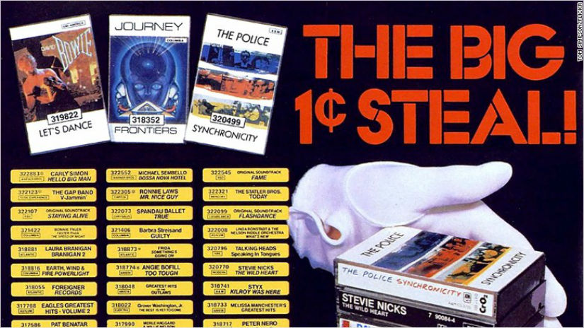 Columbia House varied its offers in a constant survey of what might work and what might not. One offer, the one a lot of people still remember and might be finding difficult to explain to their teenagers today (“Seriously, they actually did this”) was the “Get X number of tapes for one cent” offer, in which the purchaser would tape a penny to the card on which they had circled or written down the code numbers for their desired recordings. The purchase counted as an automatic membership in the Columbia House club, which meant the purchaser was promising to purchase eight or ten more albums at full price plus shipping and handling over the next three or five years, depending on the card you used. The penny was a terms and conditions agreement, like the ones we all check off without reading the actual terms and conditions online.
