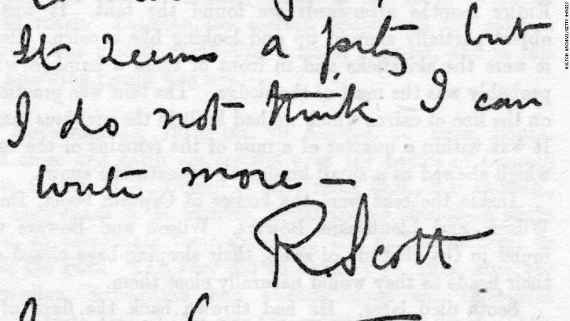 Scott made his final entry in pencil: “Every day we have been ready to start for our depot 11 miles away, but outside the door of the tent it remains a scene of whirling drift. I do not think we can hope for any better things now. We shall stick it out to the end, but we are getting weaker, of course, and the end cannot be far. It seems a pity but I do not think I can write more. R. Scott. Last entry. For God’s sake look after our people.”