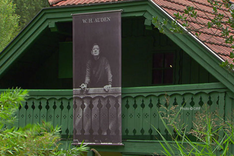 Back to Auden’s home (pictured in a recent photo at top with a poster bringing the master back to the porch outside his upstairs study):