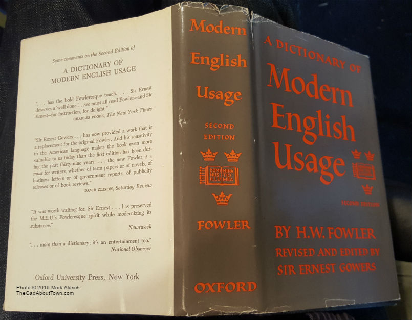 In 1926, Henry Watson Fowler published A Dictionary of Modern English Usage, a book that has remained in print ever since. (The first edition and the second edition use Fowler’s sentences; the third edition, which was published in 1996, is a substantial rewriting of the classic and uses the Fowler name as a form of brand.) Fowler’s book is not a dictionary of definitions, like Johnson’s or Webster’s, it is a usage dictionary, an instructional manual for better using this beautiful tool we have devised called the English language.