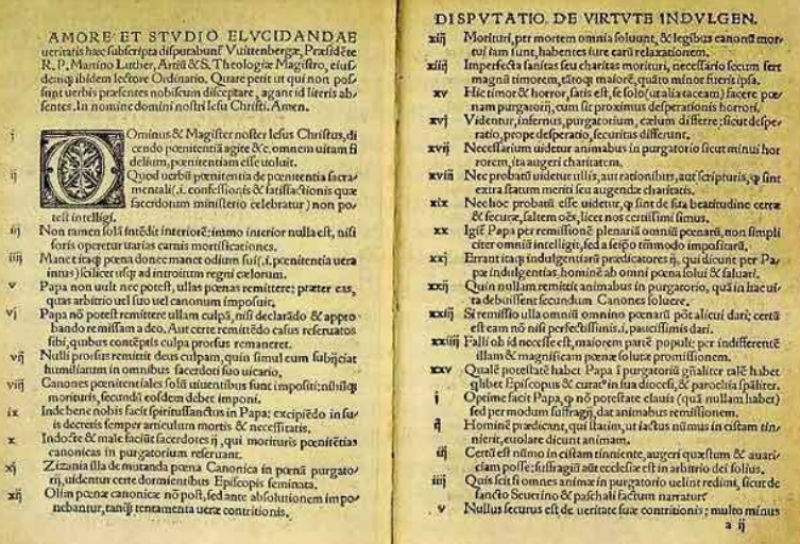 Martin Luther, a university professor and preacher, sent a long list of propositions to his archbishop against the common practice of selling indulgences—certificates guaranteeing a reduction in suffering in the afterlife for sins committed in this life—on this date in 1517. The Protestant Reformation is considered to have started 499 years ago today.