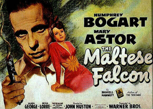 The falcon, jewel-encrusted treasure of centuries past, or not, is an innocent bystander for the entire movie. It sure looks like it is worth multiple lives, double- and triple-cheating, the sacrifice of love both real and imagined. As Det. Polhaus says in the second-to-last line, it sure is “heavy. What is it?” Sam Spade replies, and this is no spoiler even though it is the final line, “The, uh, stuff that dreams are made of.”